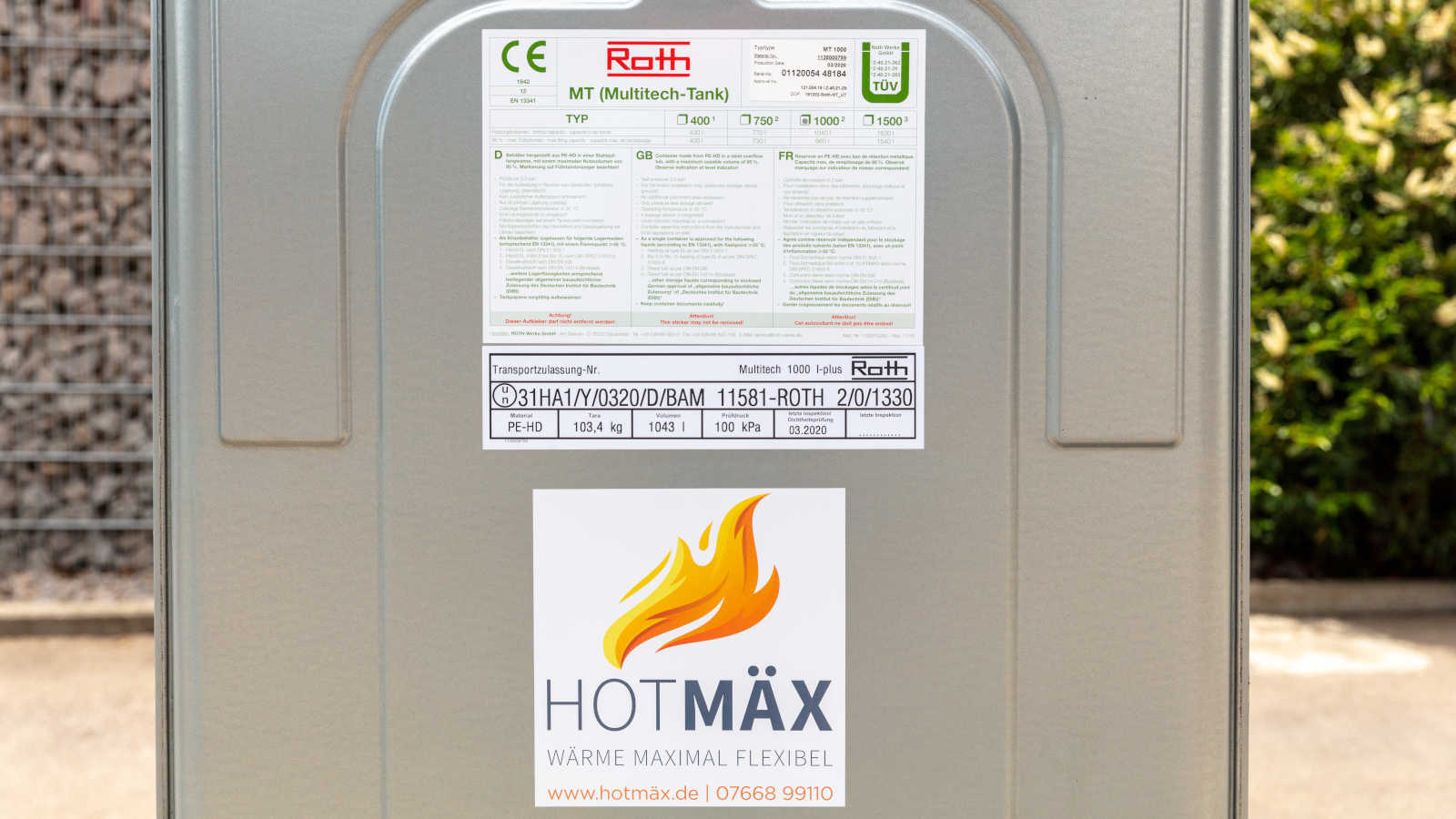 Zertifizierter Sicherheitsöltank: 1000 l als Tankerweiterung, mit Abdeckhaube zur Aufstellung im Freien, inklusive Schlauchbeheizung.