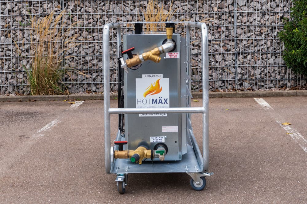Dieses Luft-Wasser-Heizgebläse mit Thermostat ist ideal als Bau- und Eventheizung einsetzbar. Durch die Rücklauftemperatursteuerung lassen sich die Gebläse auch problemlos an Fernwärme betreiben. Es ist in den Leistungsklassen 25 kW und 65 kW verfügbar. Der Anschluss erfolgt über Storz-Kupplung, für einen sicheren und stressfreien Einsatz.