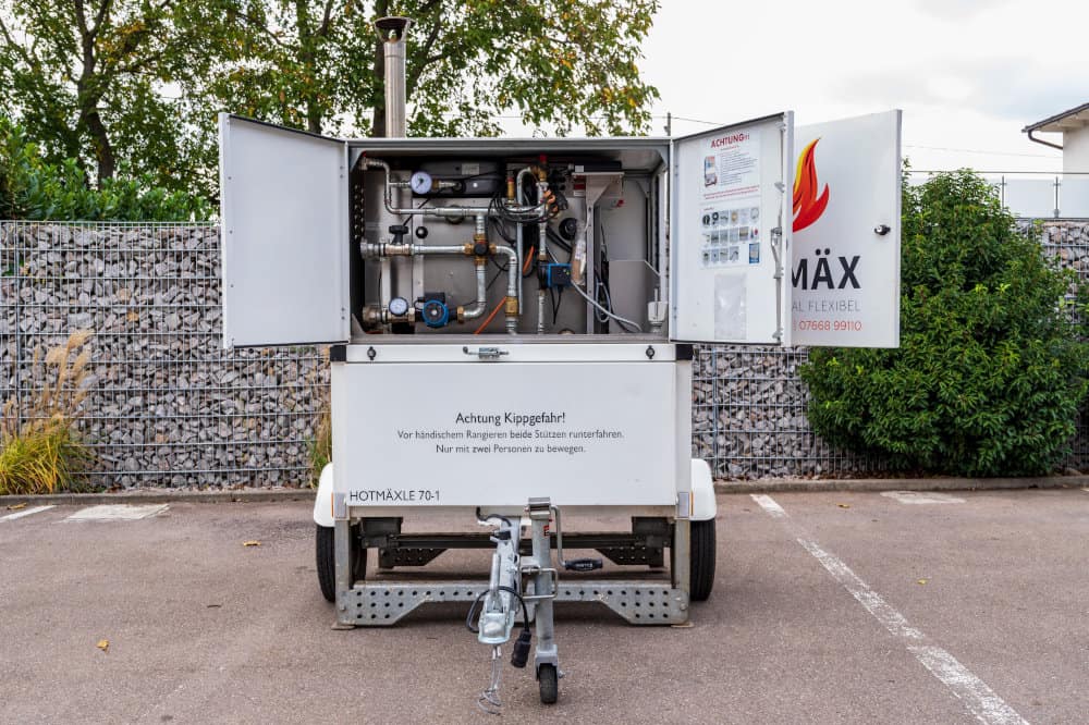 Die kleine, wendige Heizzentrale eignet sich hervorragend für mittelgroße Objekte oder enge Zugangswege. Grundparameter können aus der Ferne überwacht werden. Inbetriebnahme des Hotmäxle erfolgt durch unsere qualifizierten Heizungsmonteure – für einen schnellen, unkomplizierten Einsatz. Die Heizzentrale verfügt über folgende Highlights: Wärmeleistung 70 kW, Trinkwassermodul zubuchbar, integrierter Sicherheitsöltank mit 450 l.